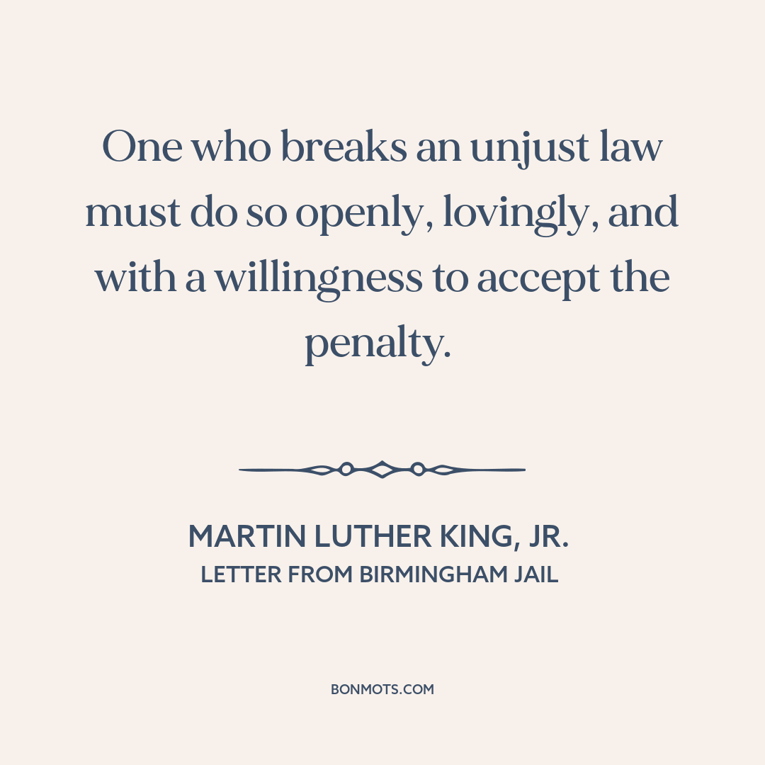 One who breaks an unjust law must do so openly, lovingly, and with a willingness to accept the penalty.