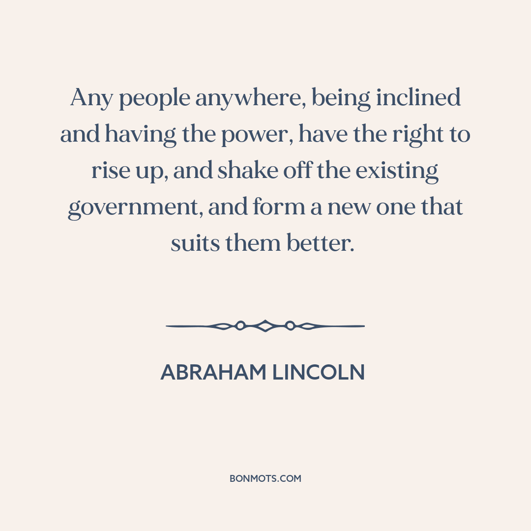 Any people anywhere, being inclined and having the power, have the right to rise up, and shake off the existing government, and form a new one that suits them better.