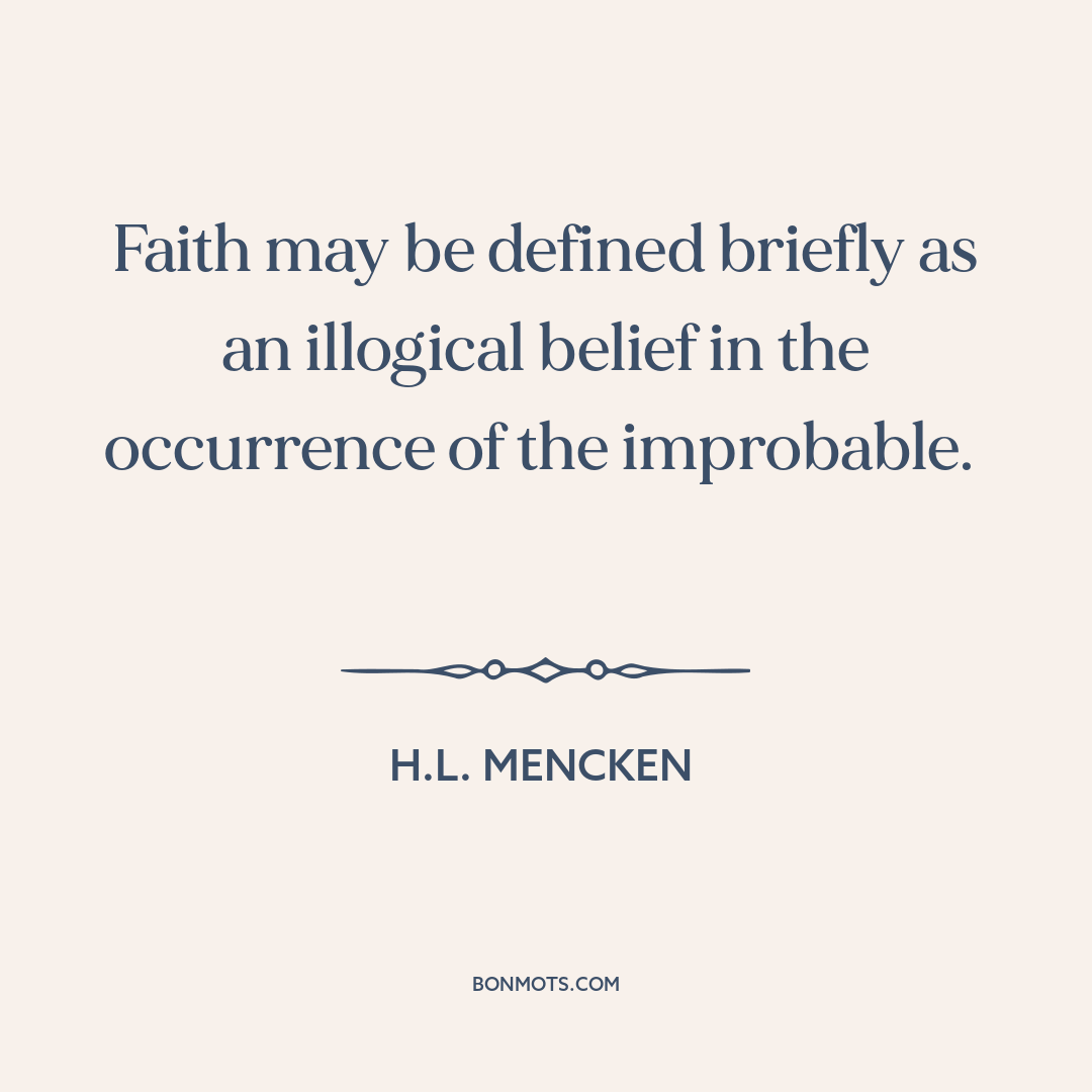 Faith may be defined briefly as an illogical belief in the occurrence of the improbable.