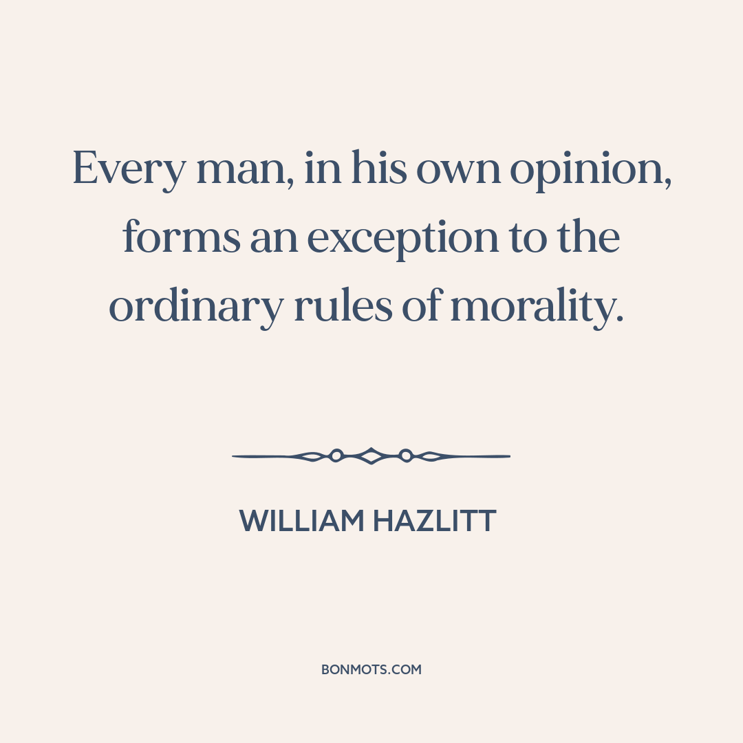 Every man, in his own opinion, forms an exception to the ordinary rules of morality.