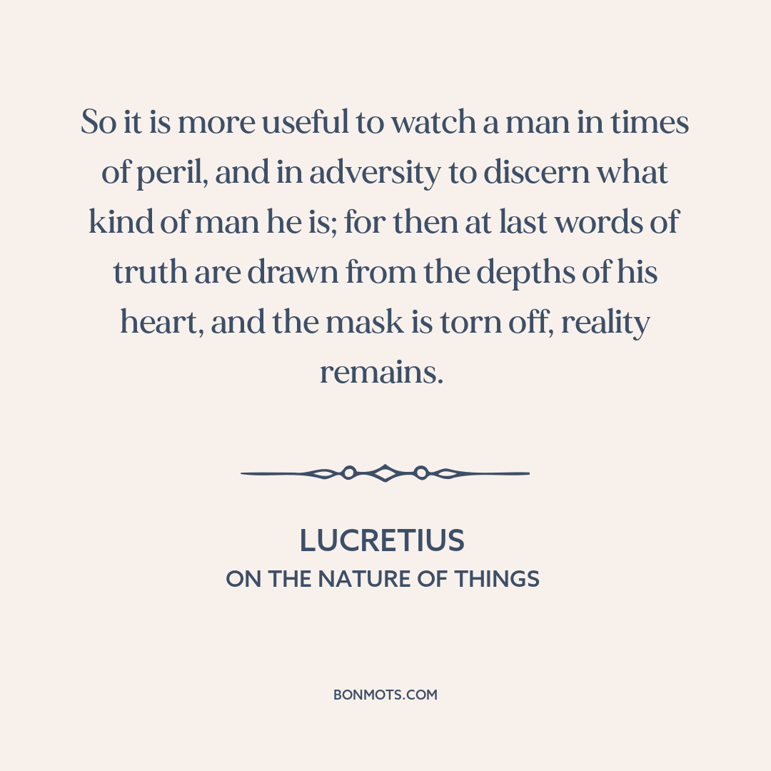 So it is more useful to watch a man in times of peril, and in adversity to discern what kind of man he is; for then at last words of truth are drawn from the depths of his heart, and the mask is torn off, reality remains.