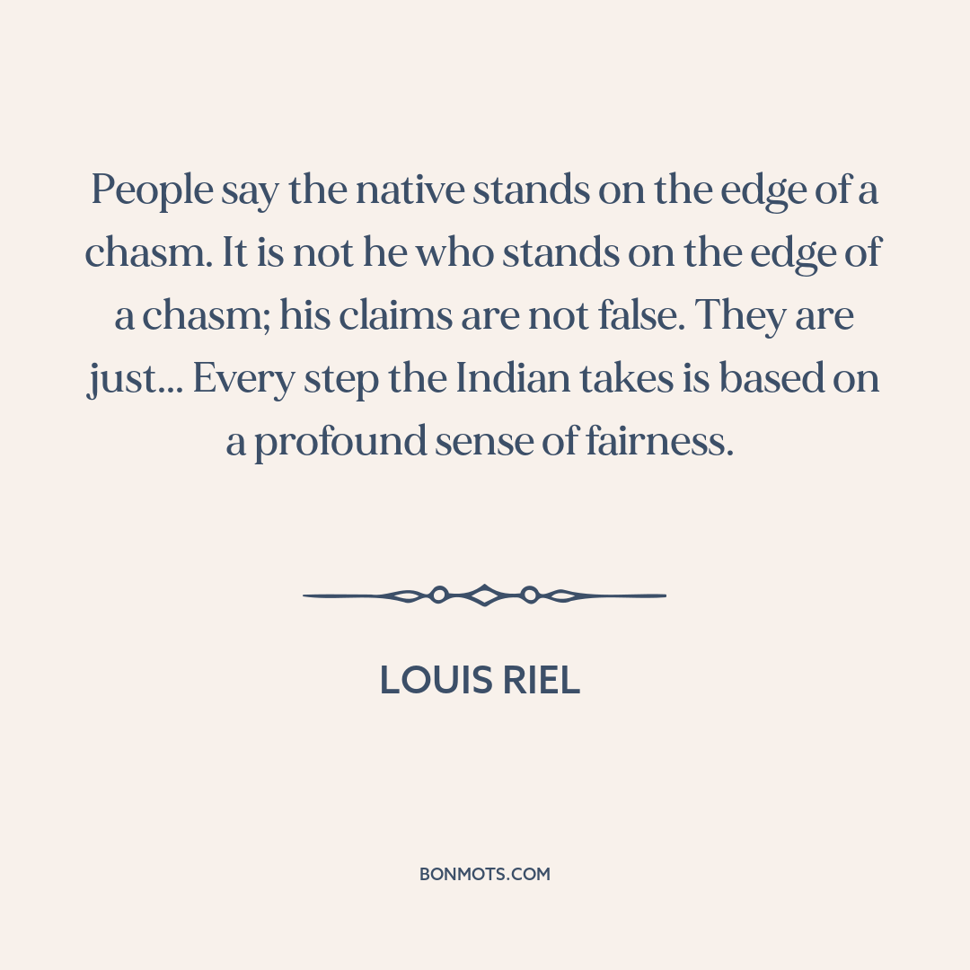 People say the native stands on the edge of a chasm. It is not he who stands on the edge of a chasm; his claims are not false. They are just... Every step the Indian takes is based on a profound sense of fairness.