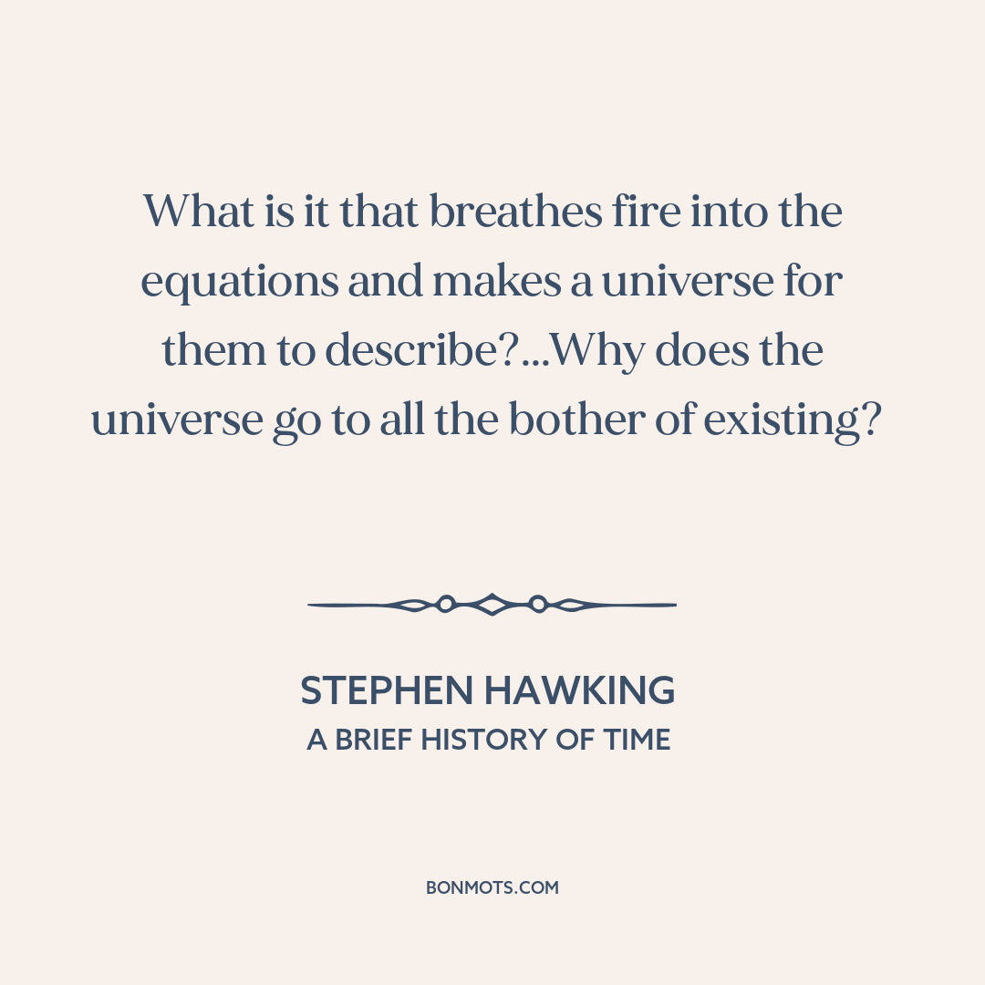 What is it that breathes fire into the equations and makes a universe for them to describe?...Why does the universe go to all the bother of existing?