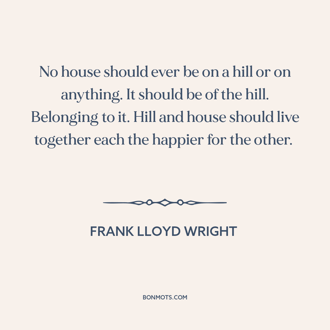 No house should ever be on a hill or on anything. It should be of the hill. Belonging to it. Hill and house should live together each the happier for the other.