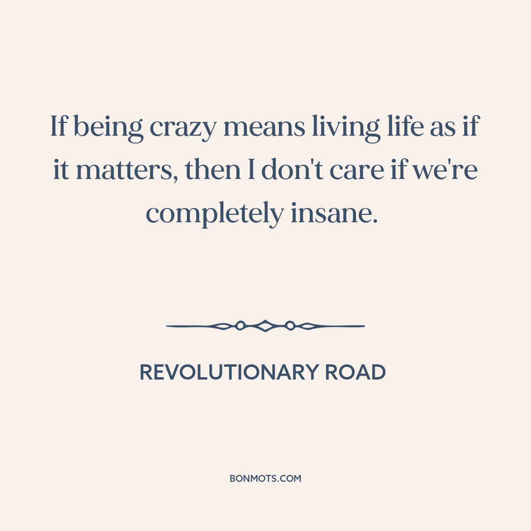 If being crazy means living life as if it matters, then I don't care if we're completely insane.
