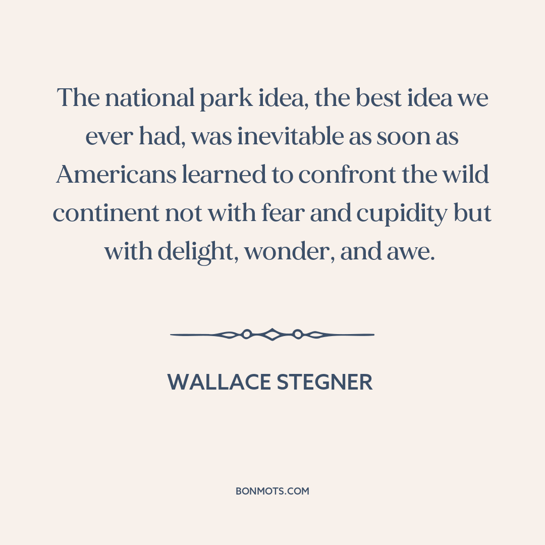The national park idea, the best idea we ever had, was inevitable as soon as Americans learned to confront the wild continent not with fear and cupidity but with delight, wonder, and awe.
