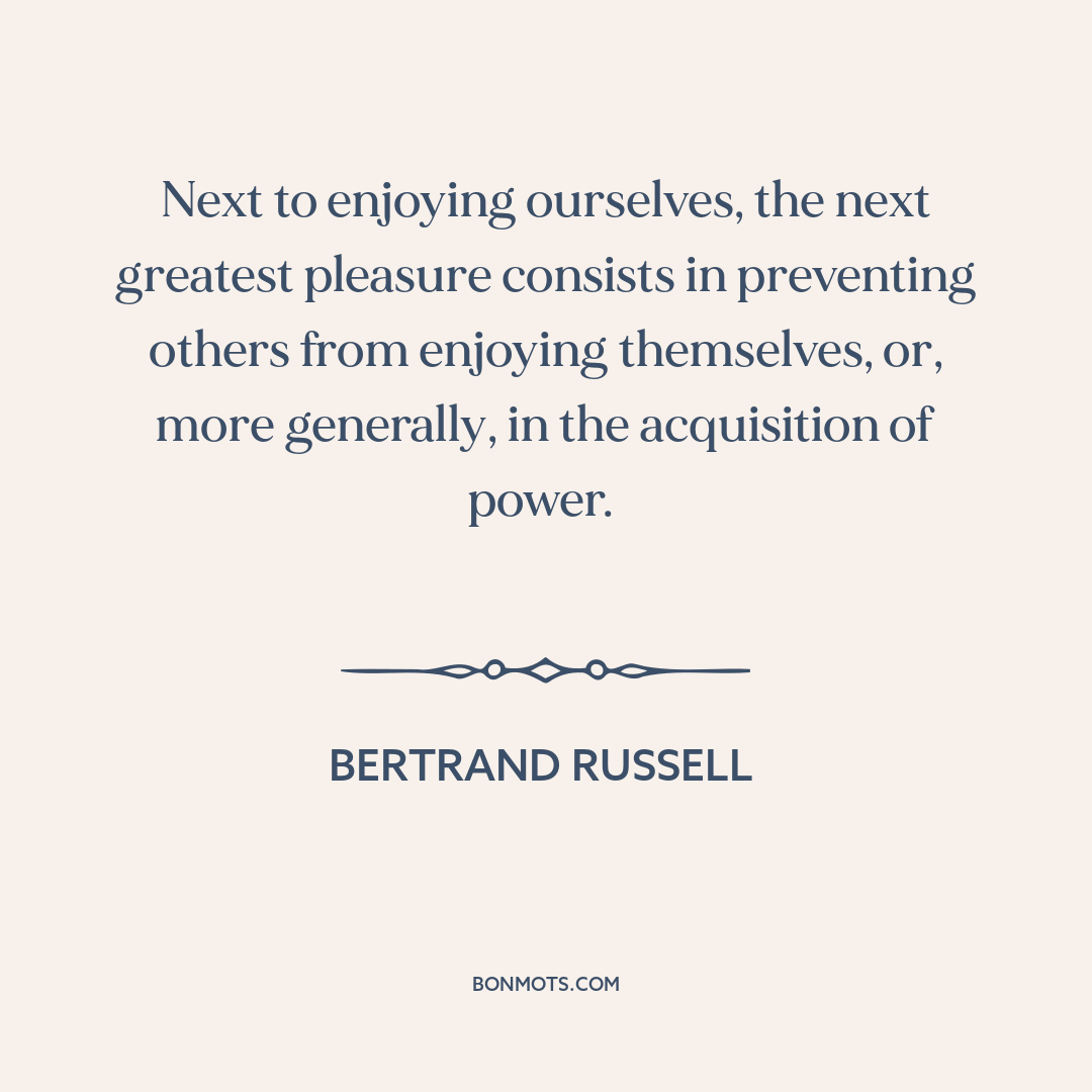 Next to enjoying ourselves, the next greatest pleasure consists in preventing others from enjoying themselves, or, more generally, in the acquisition of power.