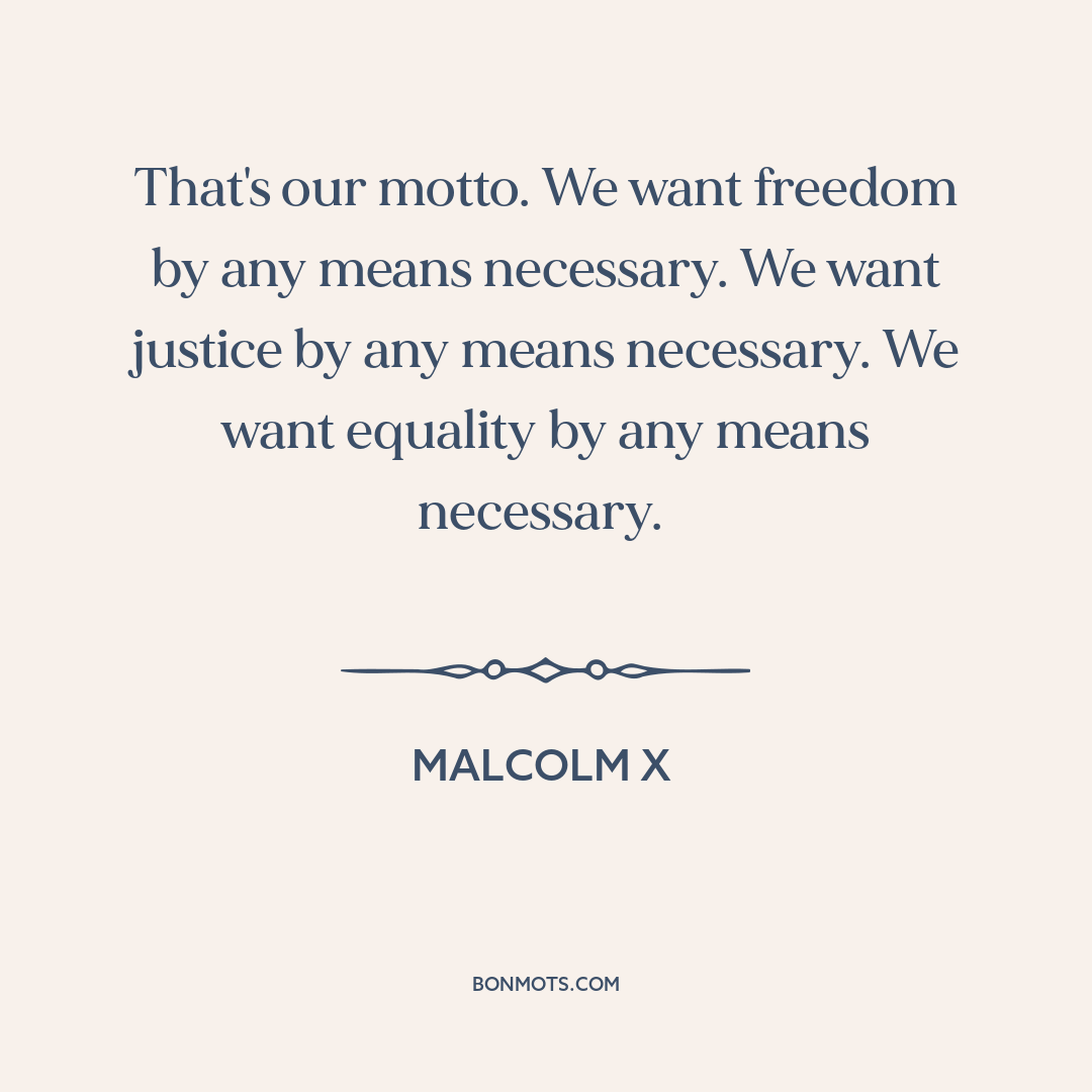 That's our motto. We want freedom by any means necessary. We want justice by any means necessary. We want equality by any means necessary.