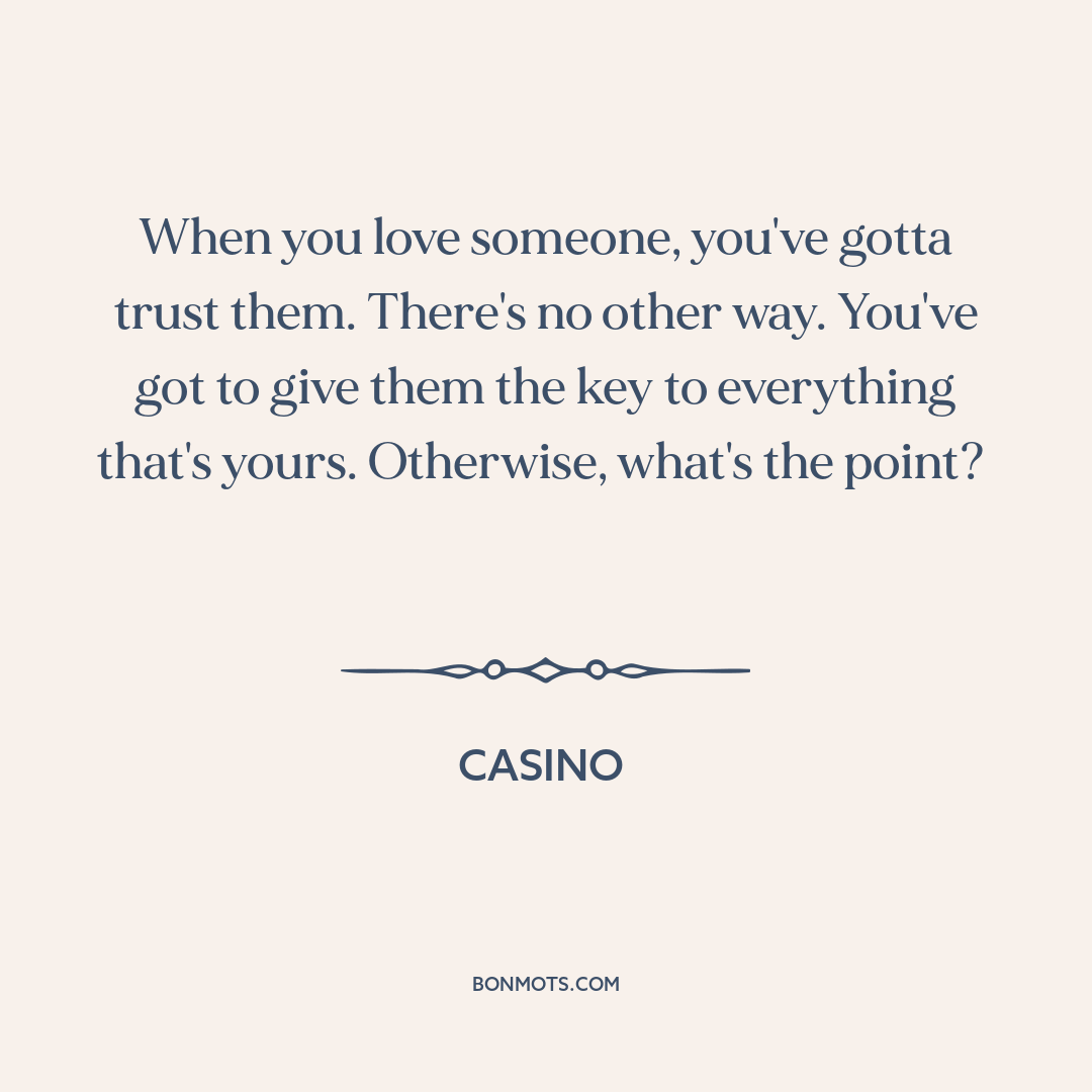 When you love someone, you've gotta trust them. There's no other way. You've got to give them the key to everything that's yours. Otherwise, what's the point?