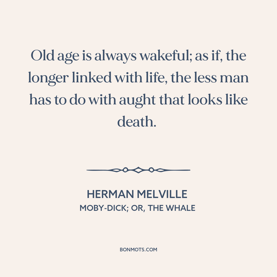 Old age is always wakeful; as if, the longer linked with life, the less man has to do with aught that looks like death.