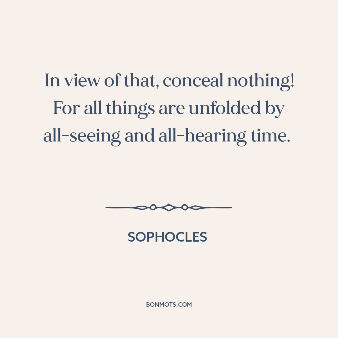 In view of that, conceal nothing! For all things are unfolded by all-seeing and all-hearing time.