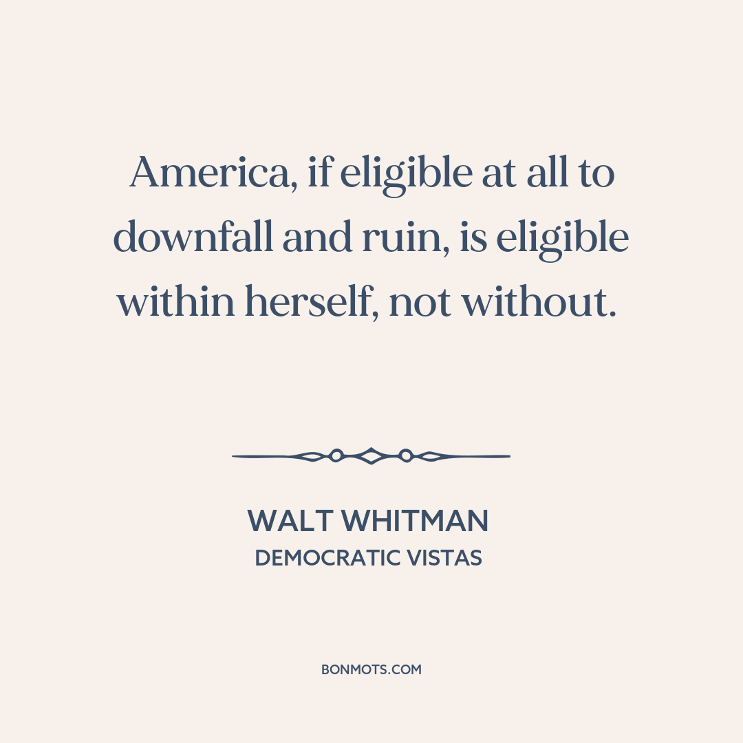 America, if eligible at all to downfall and ruin, is eligible within herself, not without.