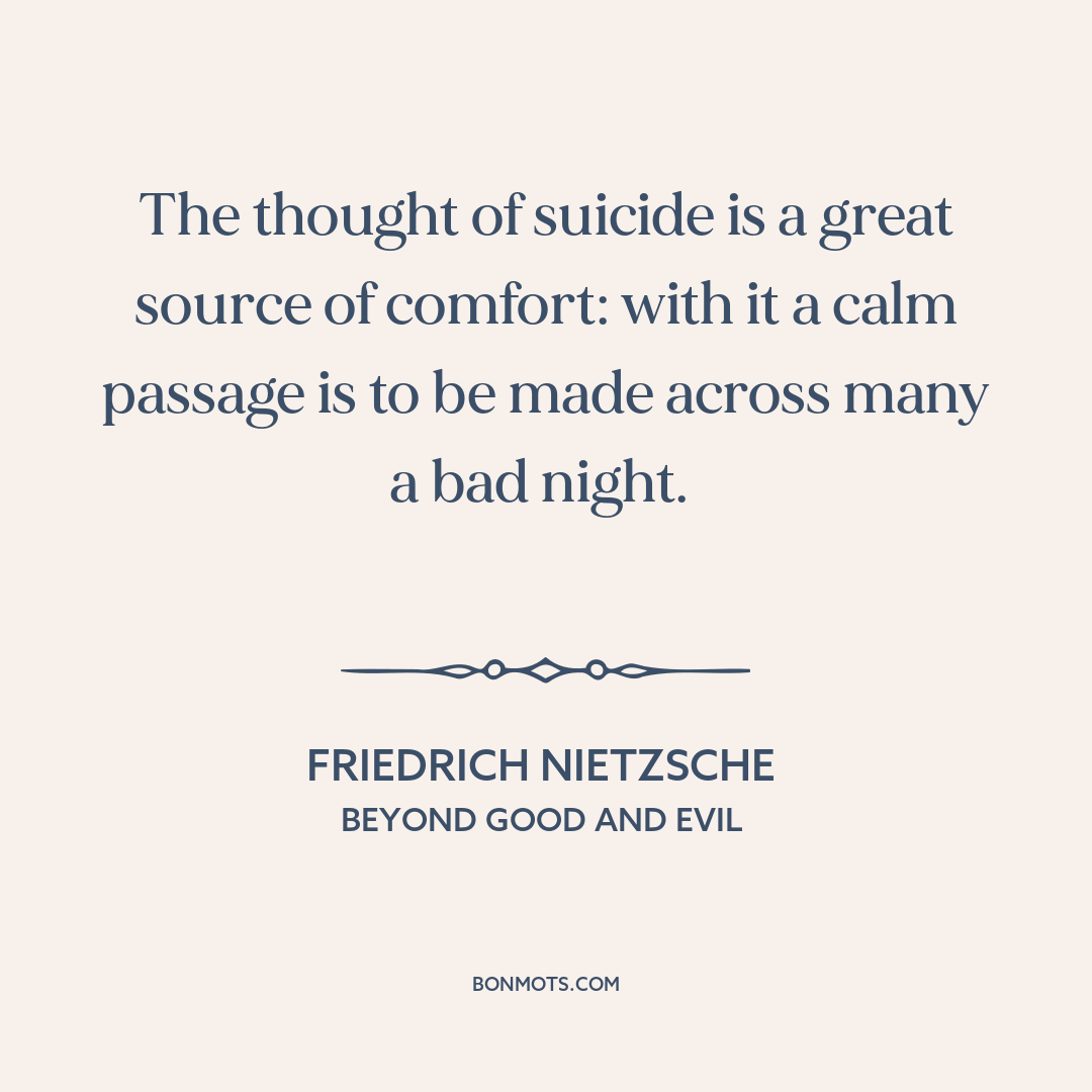 The thought of suicide is a great source of comfort: with it a calm passage is to be made across many a bad night.