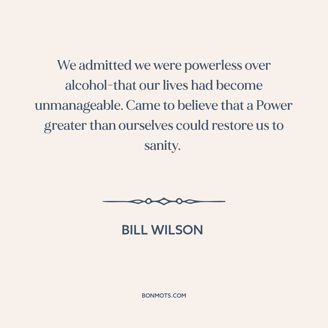 We admitted we were powerless over alcohol-that our lives had become unmanageable. Came to believe that a Power greater than ourselves could restore us to sanity.