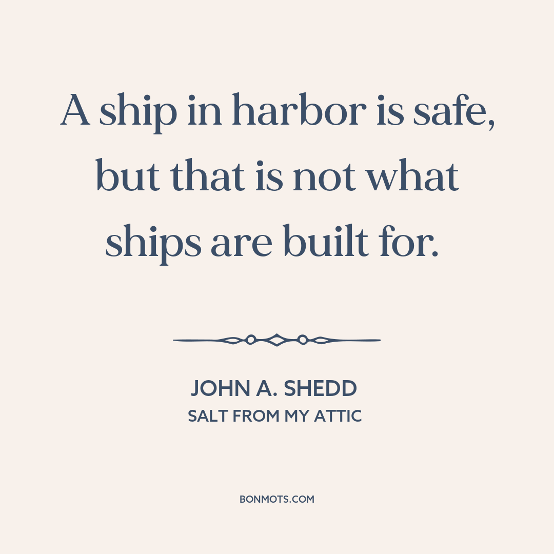 A ship in harbor is safe, but that is not what ships are built for.