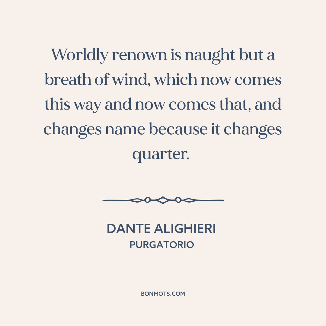 Worldly renown is naught but a breath of wind, which now comes this way and now comes that, and changes name because it changes quarter.