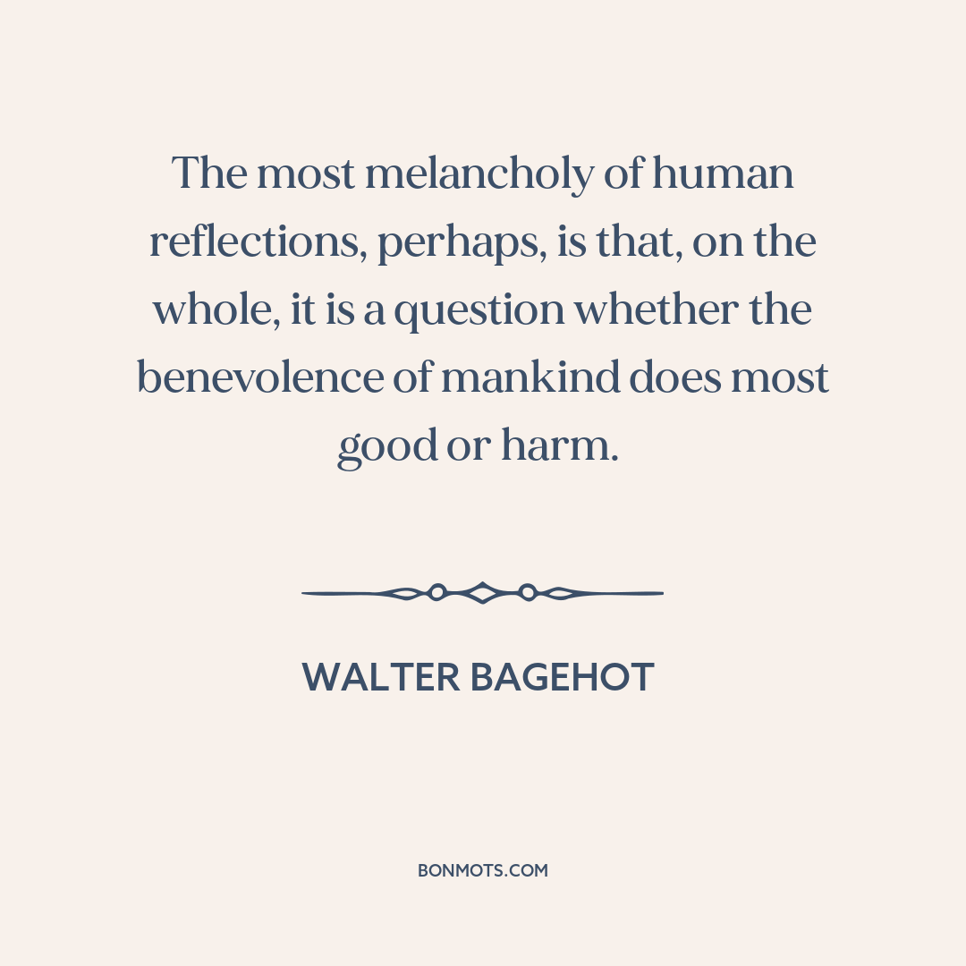 The most melancholy of human reflections, perhaps, is that, on the whole, it is a question whether the benevolence of mankind does most good or harm.