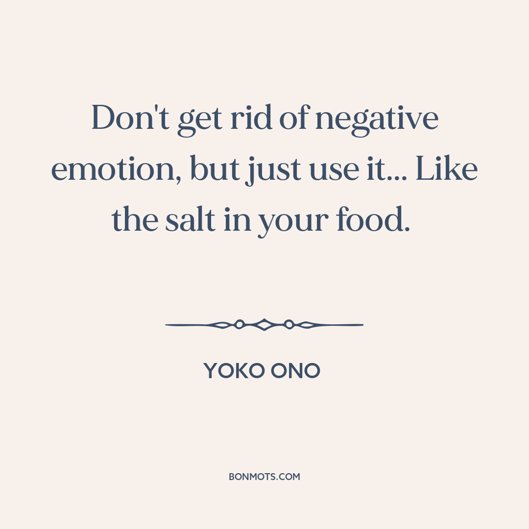 Yoko Ono [@yokoono]. "Don't get rid of negative emotion, but just use it...like the salt in your food." Twitter, 27 Mar. 2016, 3:12 p.m., twitter.com/yokoono/status/714168108844523520.