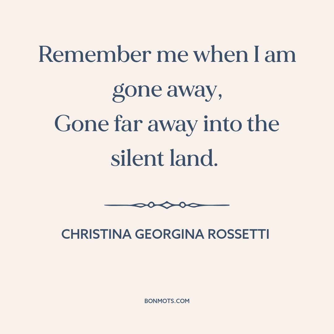 Rossetti, Christina. "Remember." Goblin Market and Other Poems. London: Macmillan, 1862, I. 1.