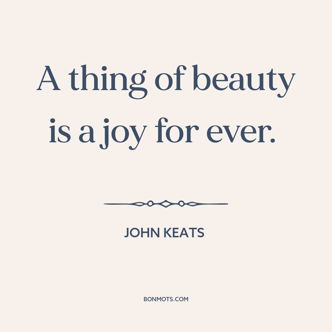 Keats, John. Endymion: A Poetic Romance. London: Taylor & Hessey, 1818, bk. 1, l. 1.