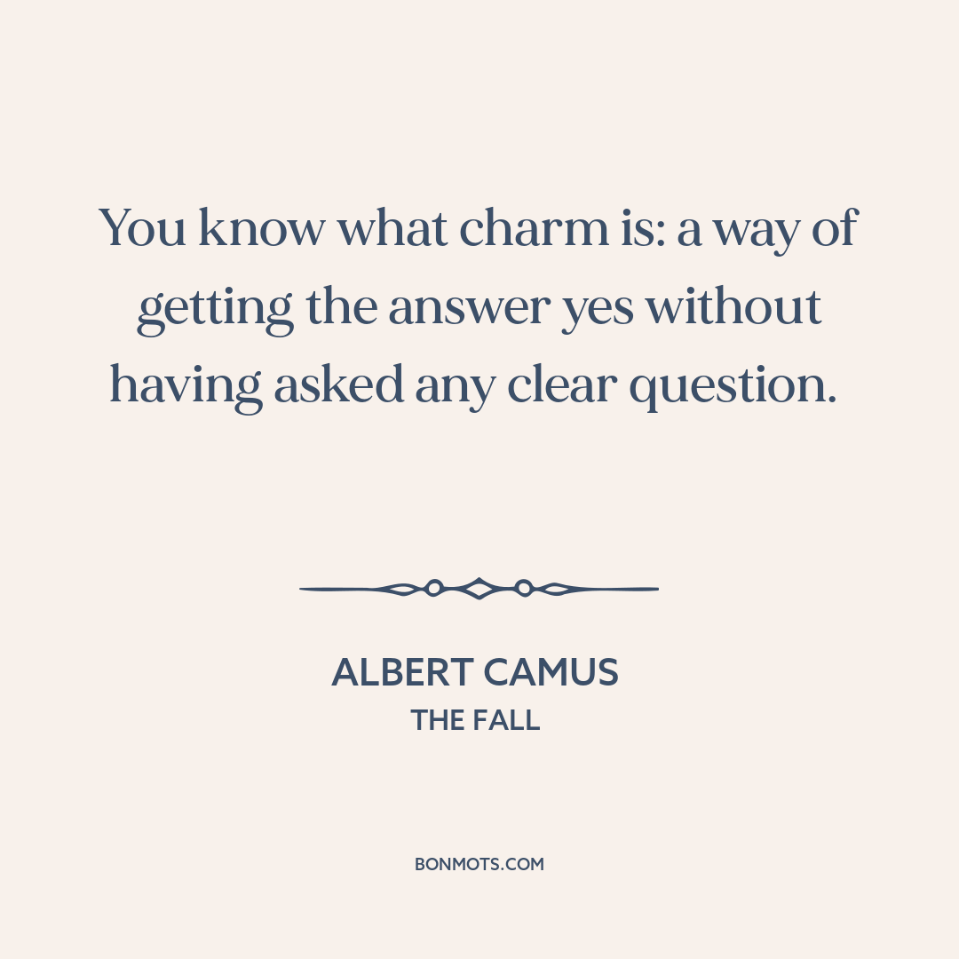 You know what charm is: a way of getting the answer yes without having asked any clear question.