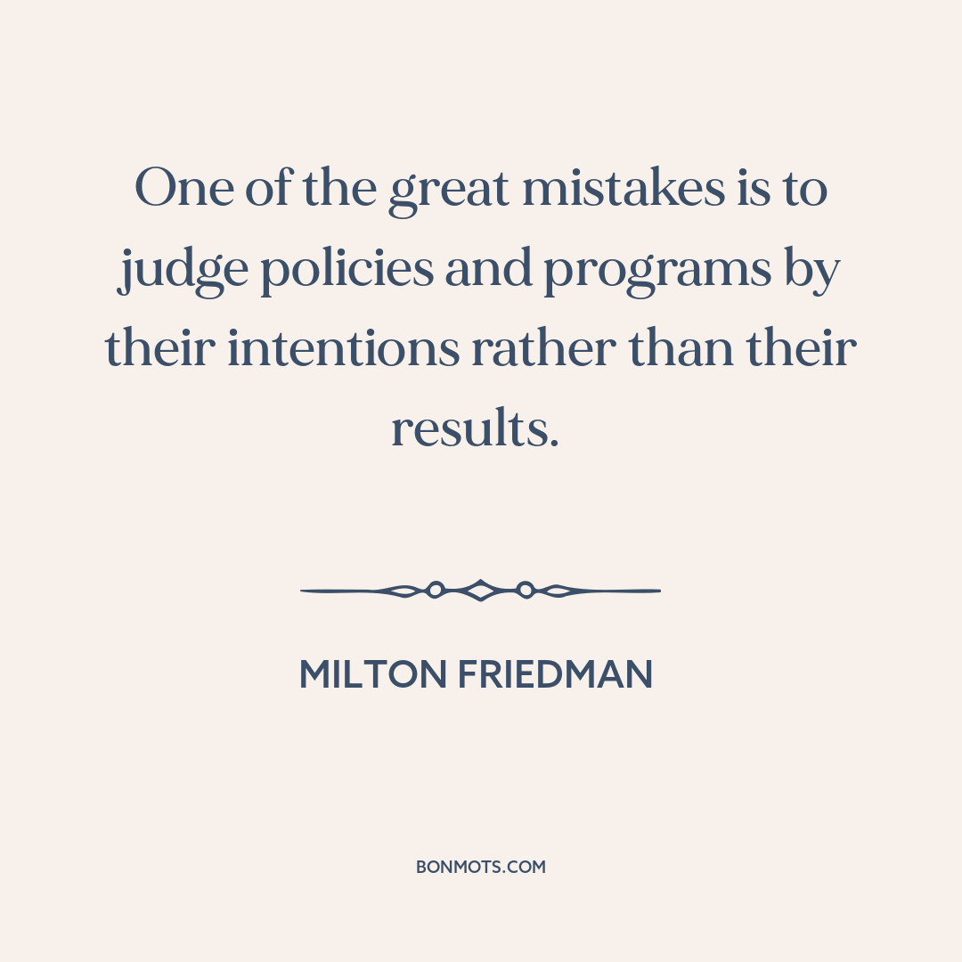 One of the great mistakes is to judge policies and programs by their intentions rather than their results.