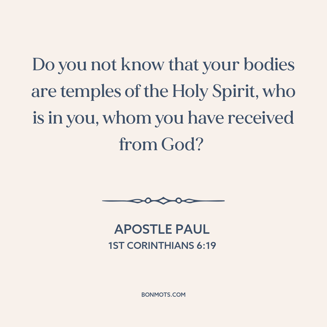 Do you not know that your bodies are temples of the Holy Spirit, who is in you, whom you have received from God?