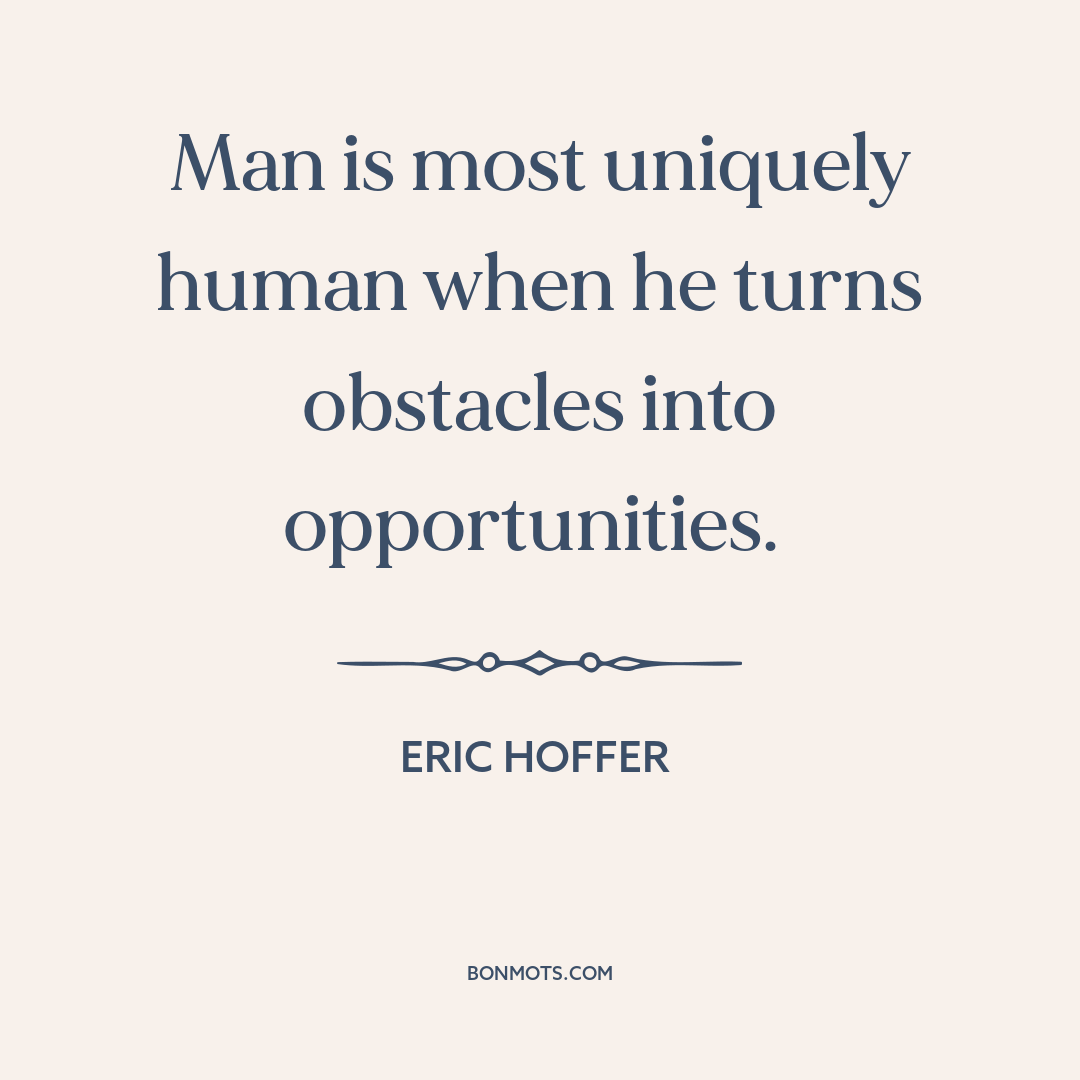Man is most uniquely human when he turns obstacles into opportunities.