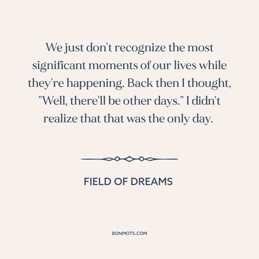 We just don't recognize the most significant moments of our lives while they're happening. Back then I thought, "Well, there'll be other days." I didn't realize that that was the only day.