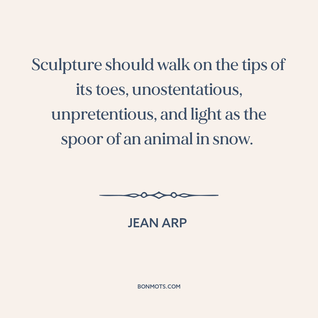 Sculpture should walk on the tips of its toes, unostentatious, unpretentious, and light as the spoor of an animal in snow.