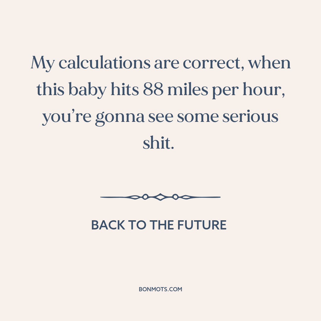 My calculations are correct, when this baby hits 88 miles per hour, you’re gonna see some serious shit.