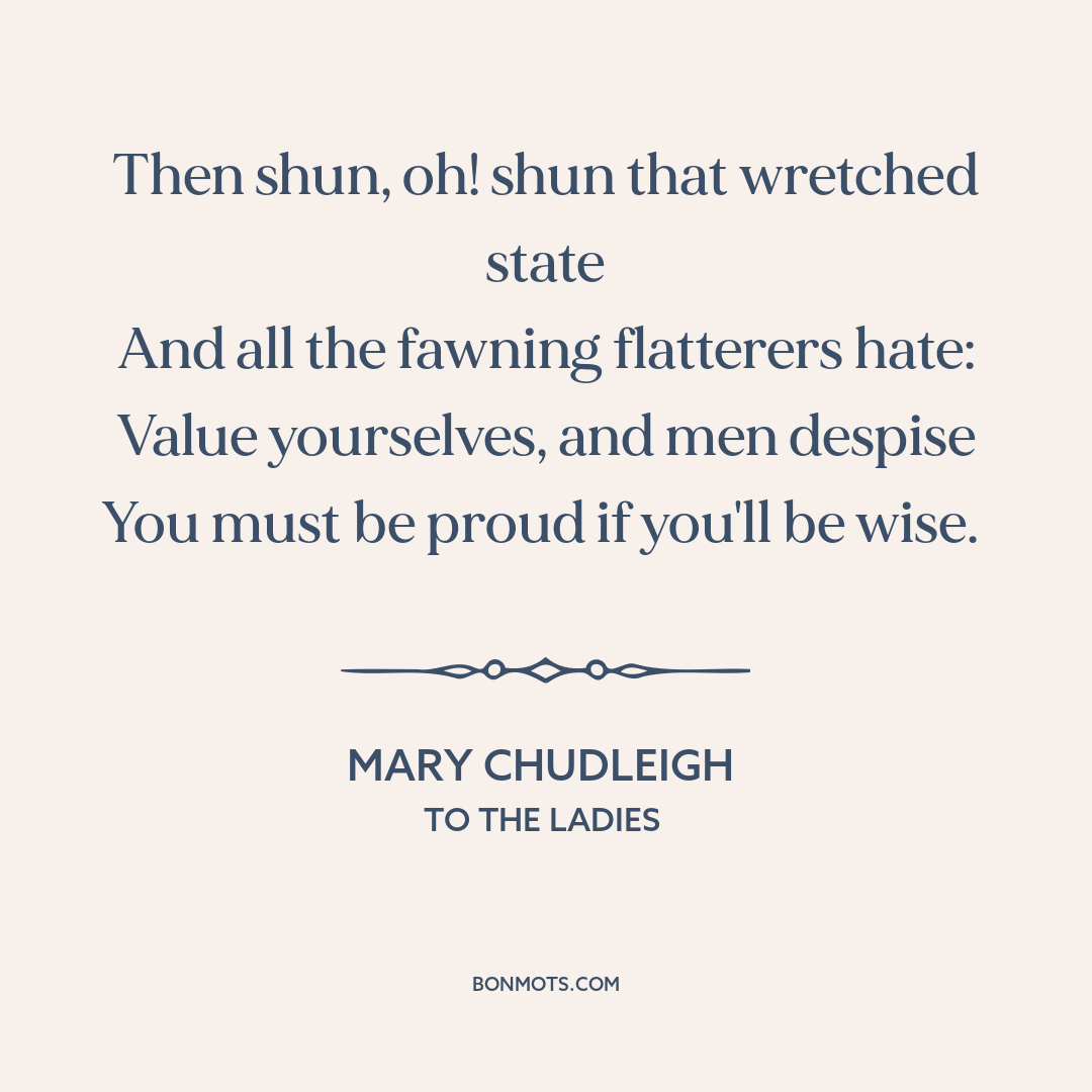 Chudleigh, Mary. "To the Ladies." The Poems and Prose of Mary, Lady Chudleigh. Oxford University Press, 1993, I. 21.
