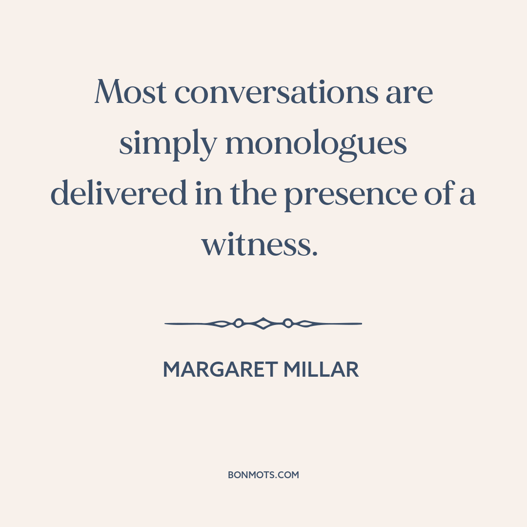 Most conversations are simply monologues delivered in the presence of a witness.