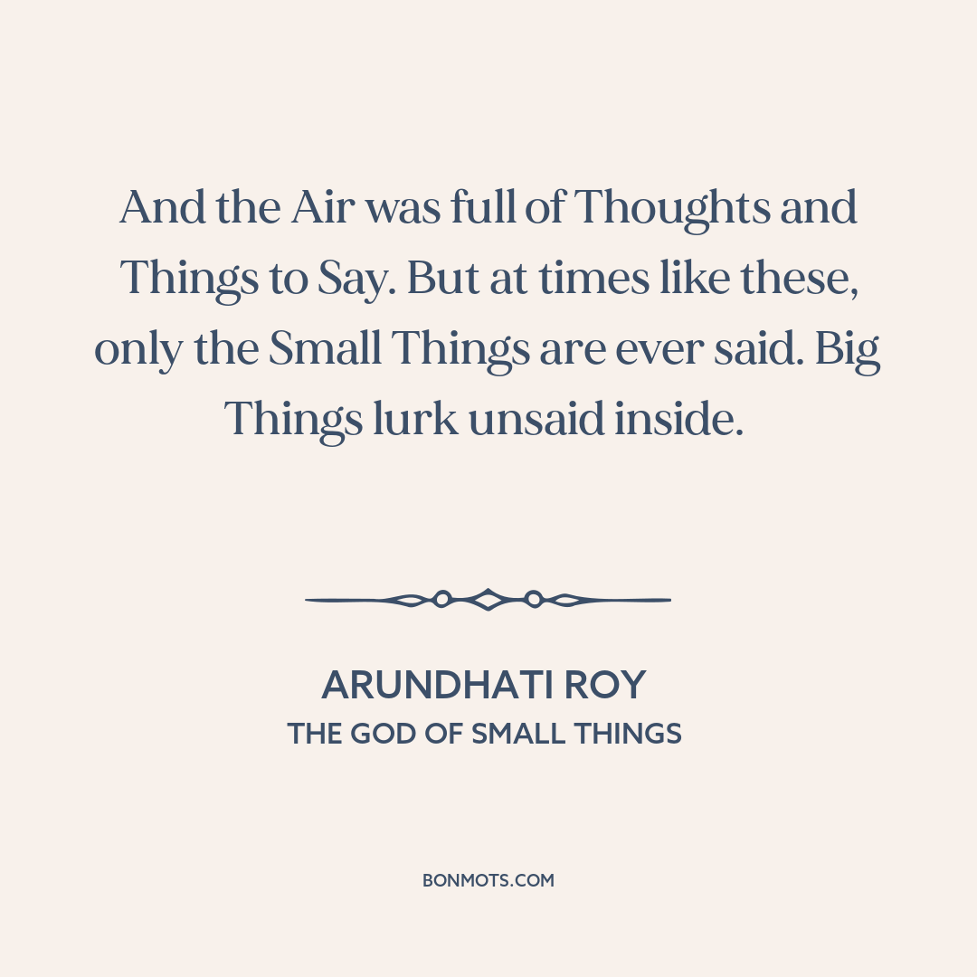 And the Air was full of Thoughts and Things to Say. But at times like these, only the Small Things are ever said. Big Things lurk unsaid inside.