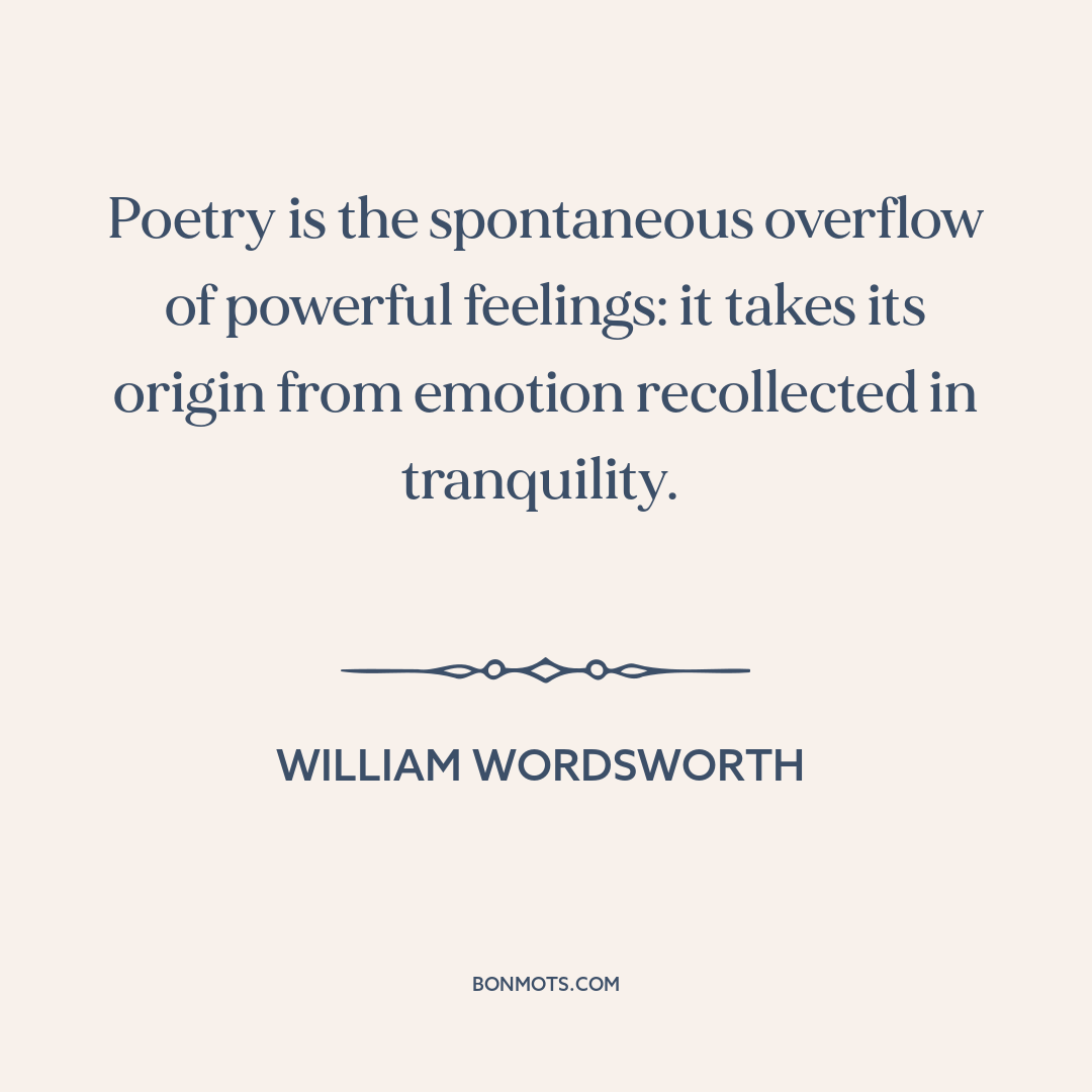 Poetry is the spontaneous overflow of powerful feelings: it takes its origin from emotion recollected in tranquility.
