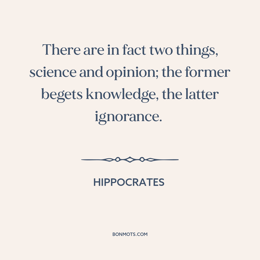 There are in fact two things, science and opinion; the former begets knowledge, the latter ignorance.