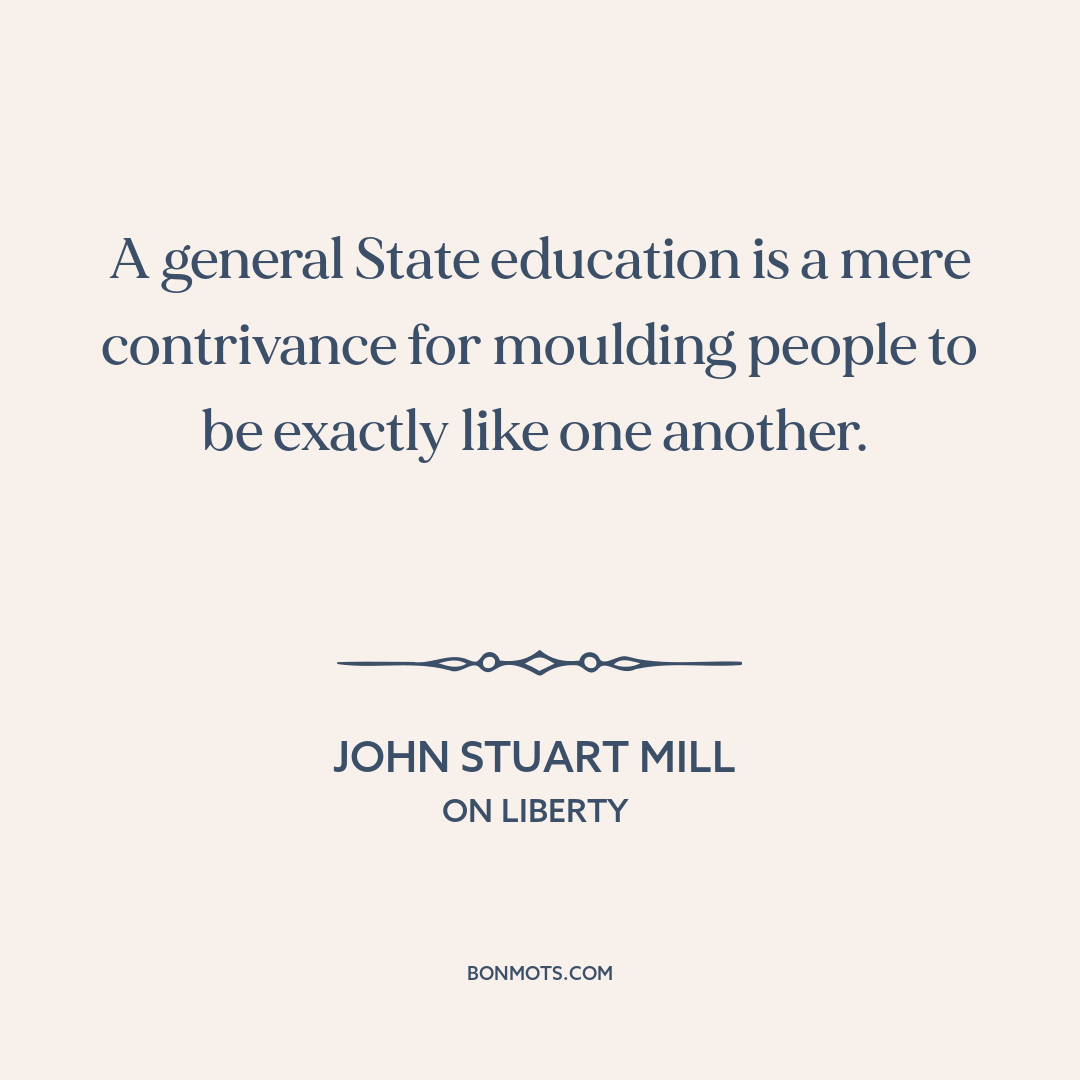 A general State education is a mere contrivance for moulding people to be exactly like one another.