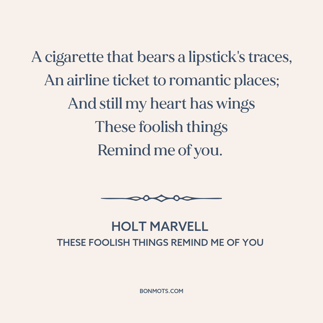 Maschwitz, Eric (published as Holt Marvell). "These Foolish Things Remind Me of You." Composed by Jack Strachey. Boosey & Hawkes, 1935.
