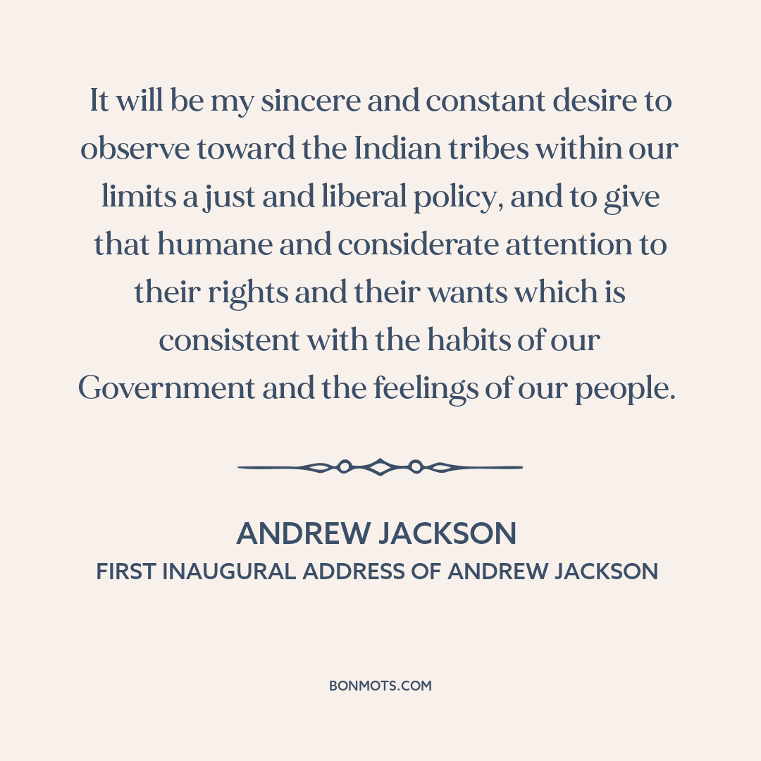 It will be my sincere and constant desire to observe toward the Indian tribes within our limits a just and liberal policy, and to give that humane and considerate attention to their rights and their wants which is consistent with the habits of our Government and the feelings of our people.