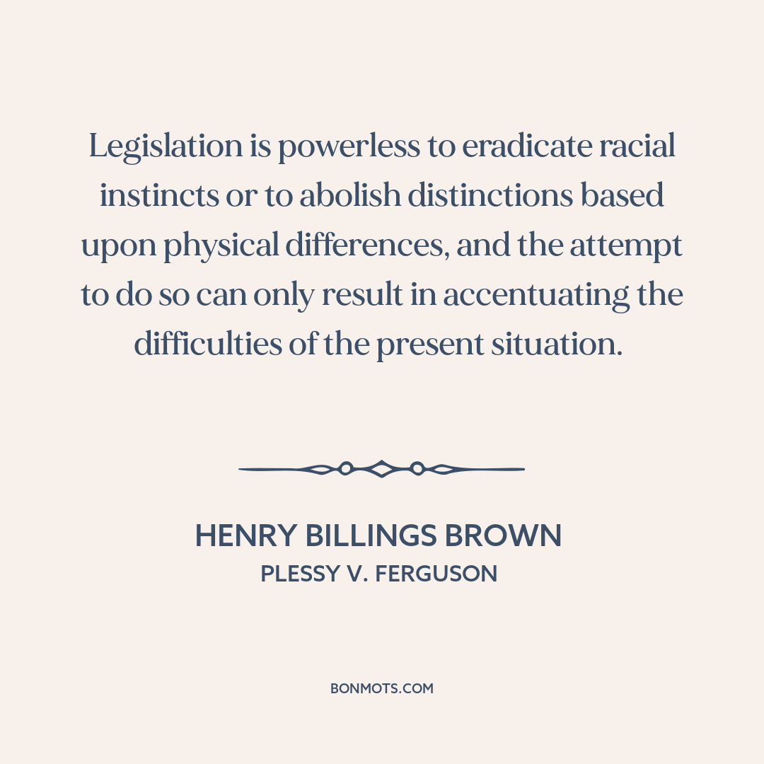 Legislation is powerless to eradicate racial instincts or to abolish distinctions based upon physical differences, and the attempt to do so can only result in accentuating the difficulties of the present situation.