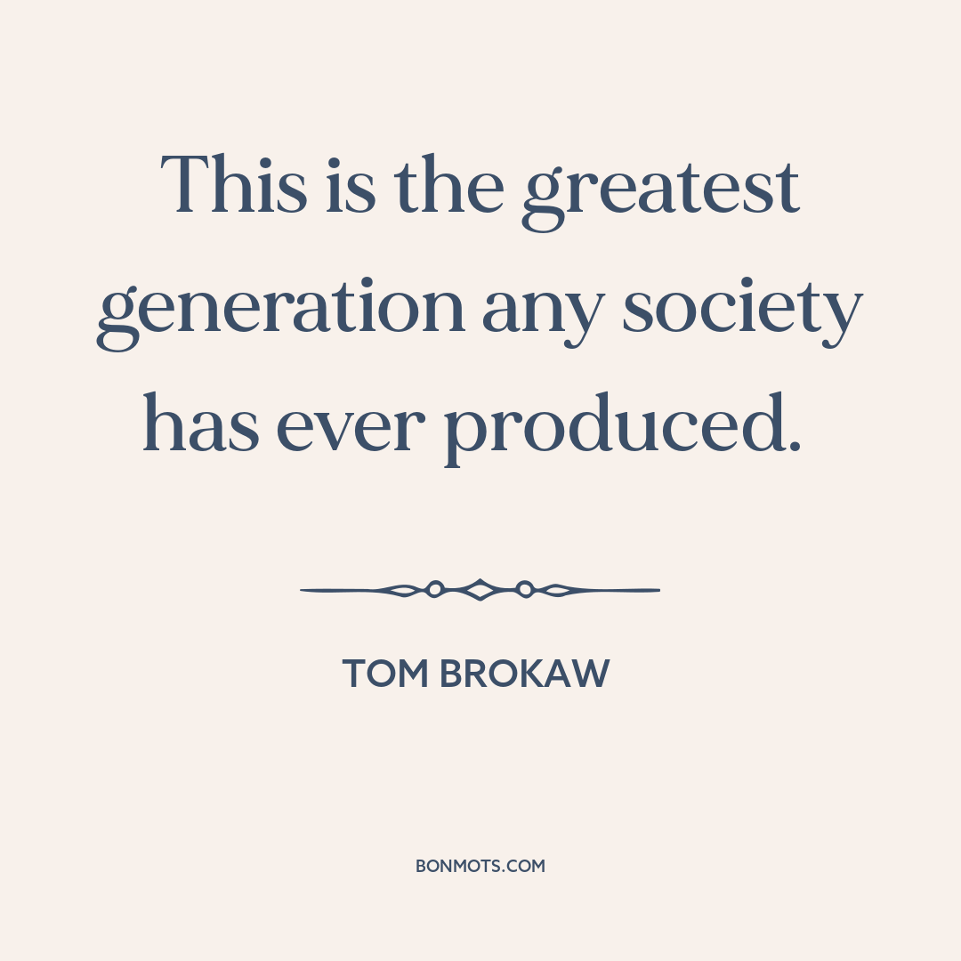 This is the greatest generation any society has ever produced.