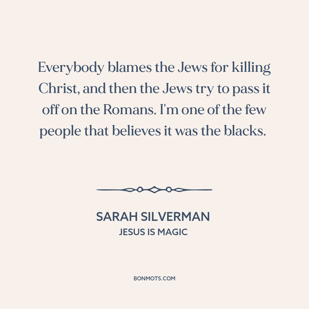Everybody blames the Jews for killing Christ, and then the Jews try to pass it off on the Romans. I'm one of the few people that believes it was the blacks.