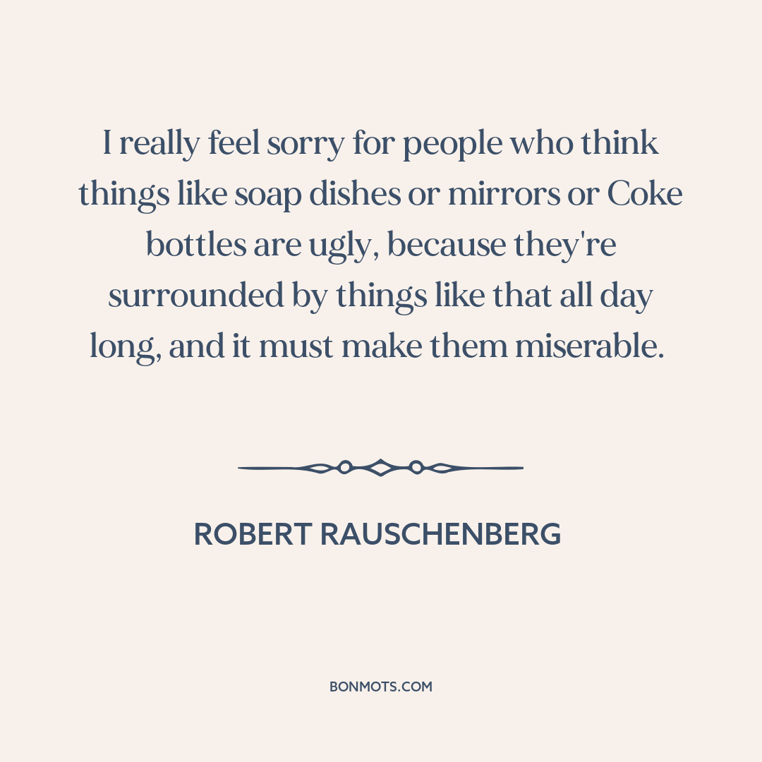 I really feel sorry for people who think things like soap dishes or mirrors or Coke bottles are ugly, because they're surrounded by things like that all day long, and it must make them miserable.