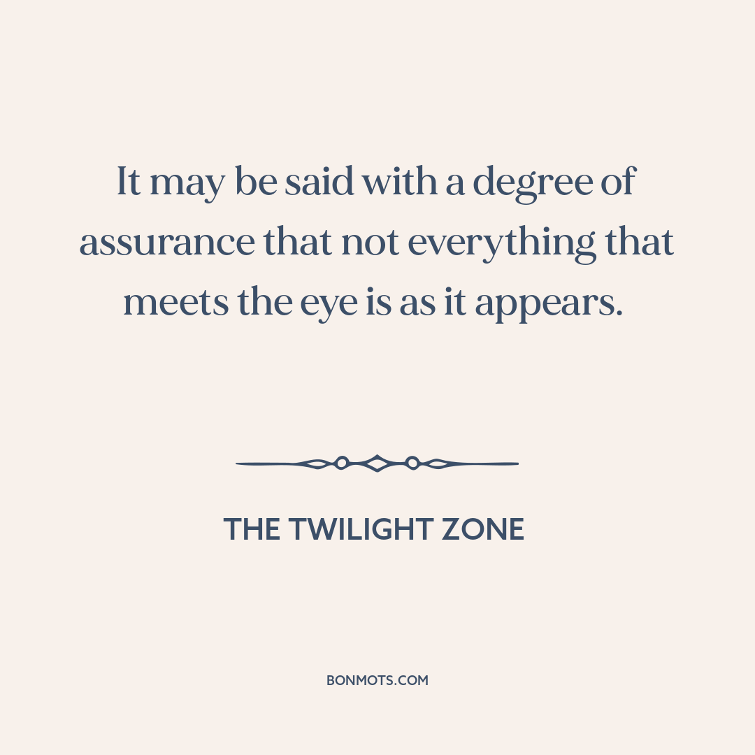 It may be said with a degree of assurance that not everything that meets the eye is as it appears.