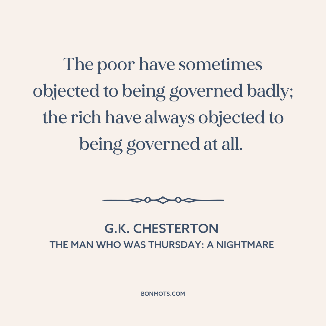 The poor have sometimes objected to being governed badly; the rich have always objected to being governed at all.