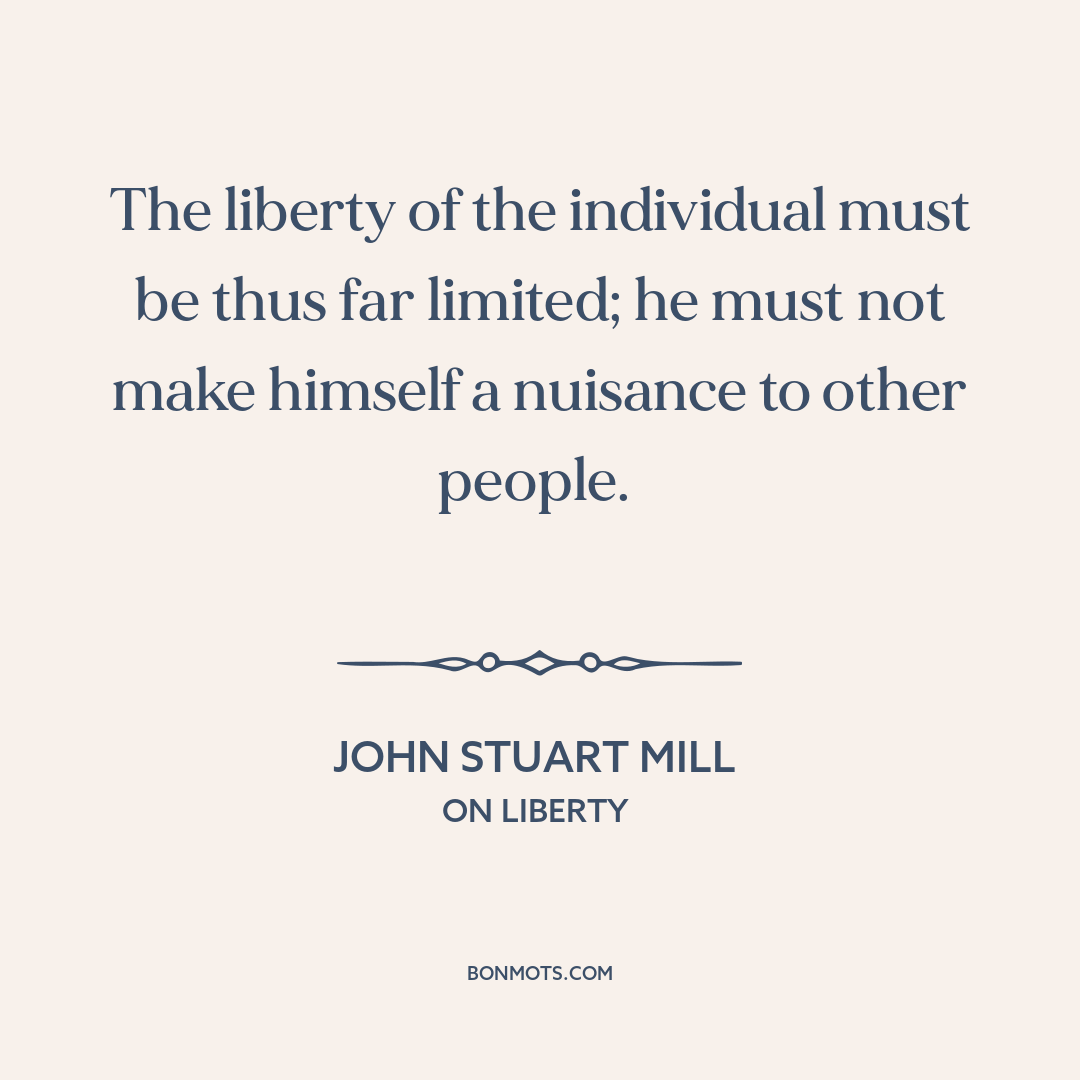 The liberty of the individual must be thus far limited; he must not make himself a nuisance to other people.