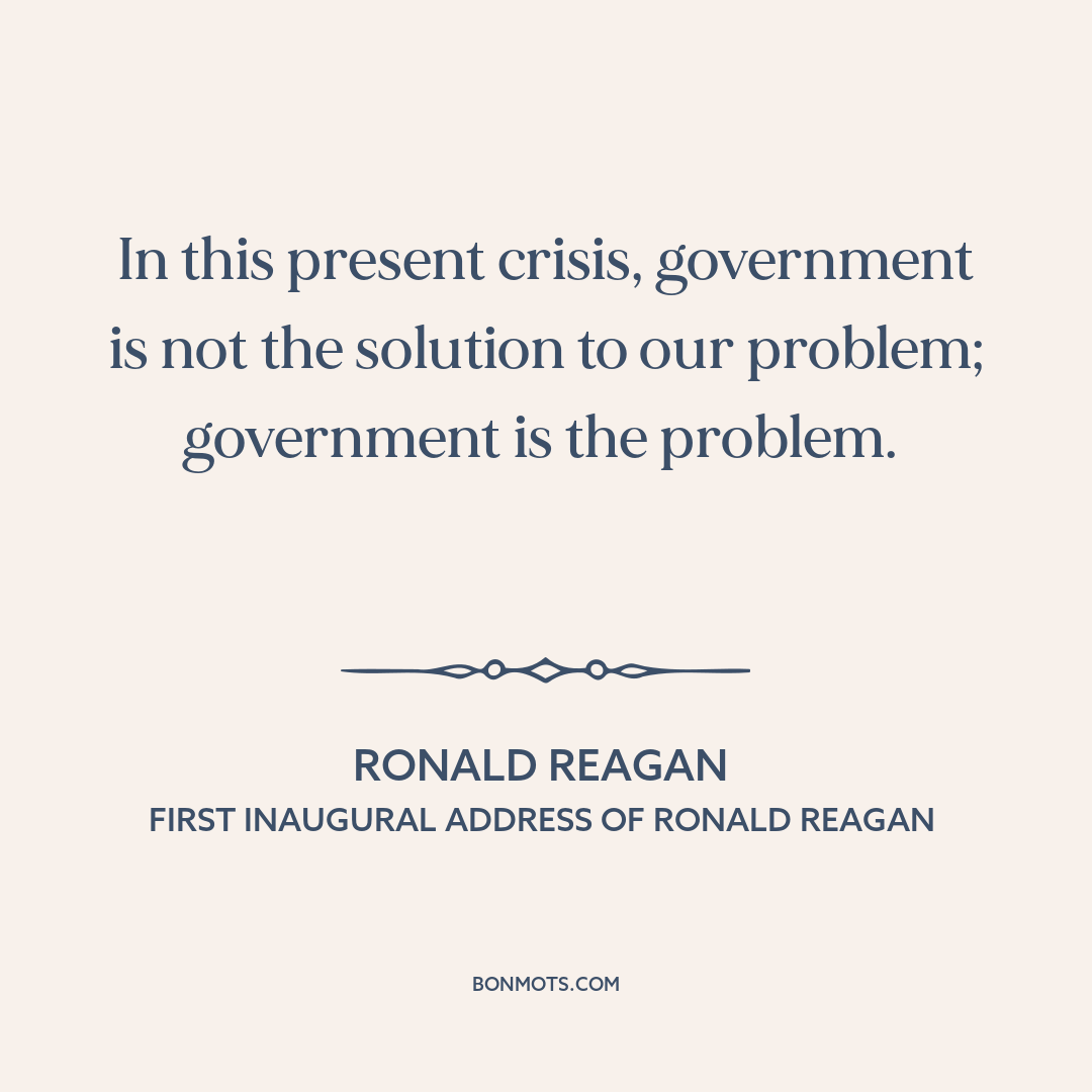 In this present crisis, government is not the solution to our problem; government is the problem.