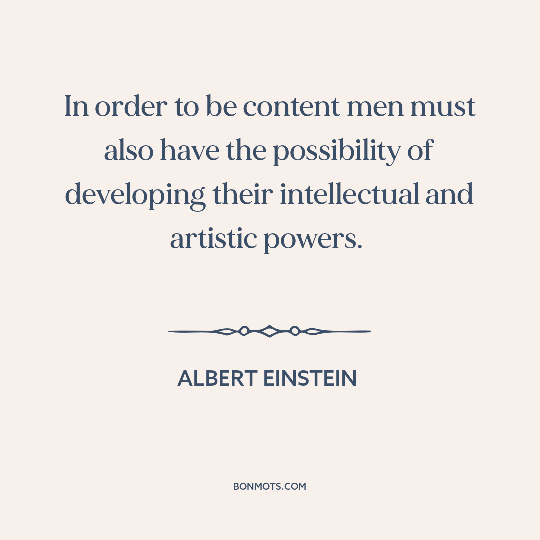 In order to be content men must also have the possibility of developing their intellectual and artistic powers.