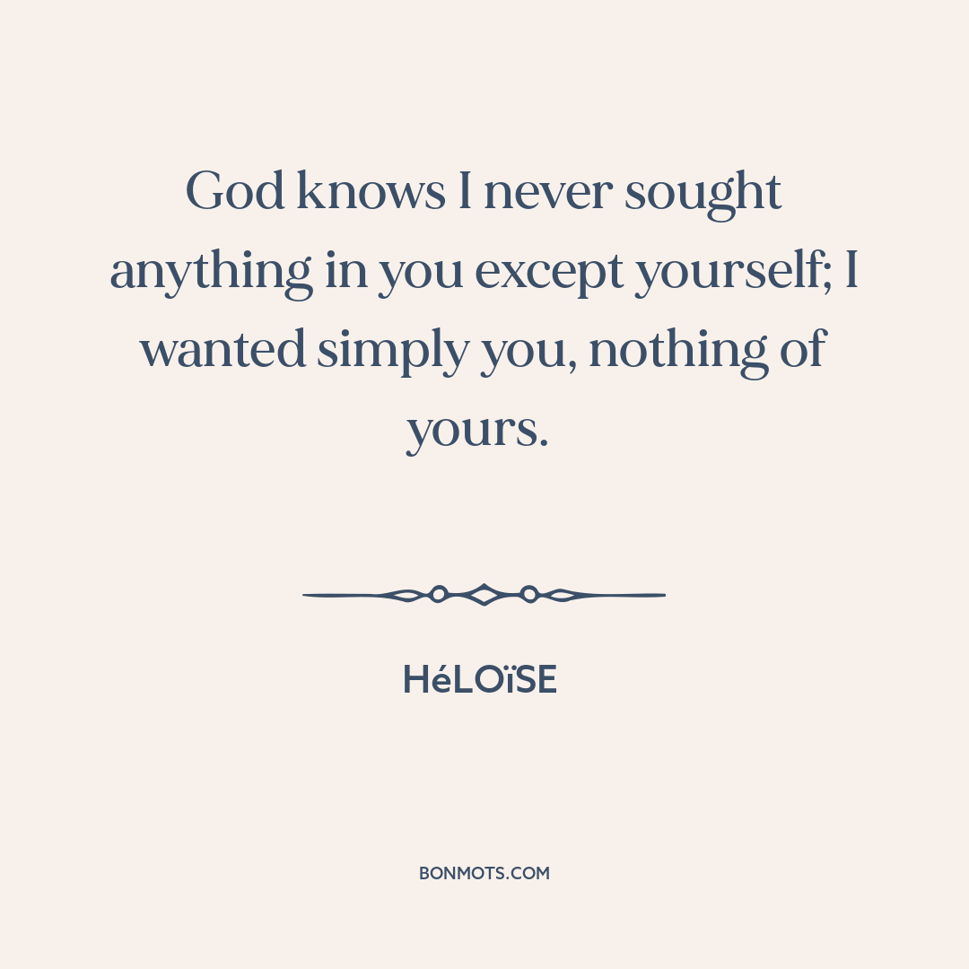 God knows I never sought anything in you except yourself; I wanted simply you, nothing of yours.