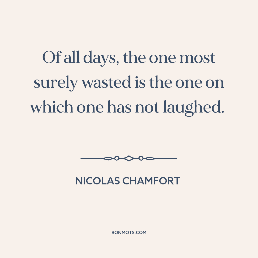 Of all days, the one most surely wasted is the one on which one has not laughed.